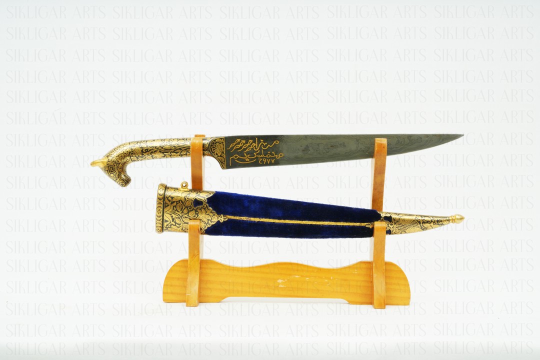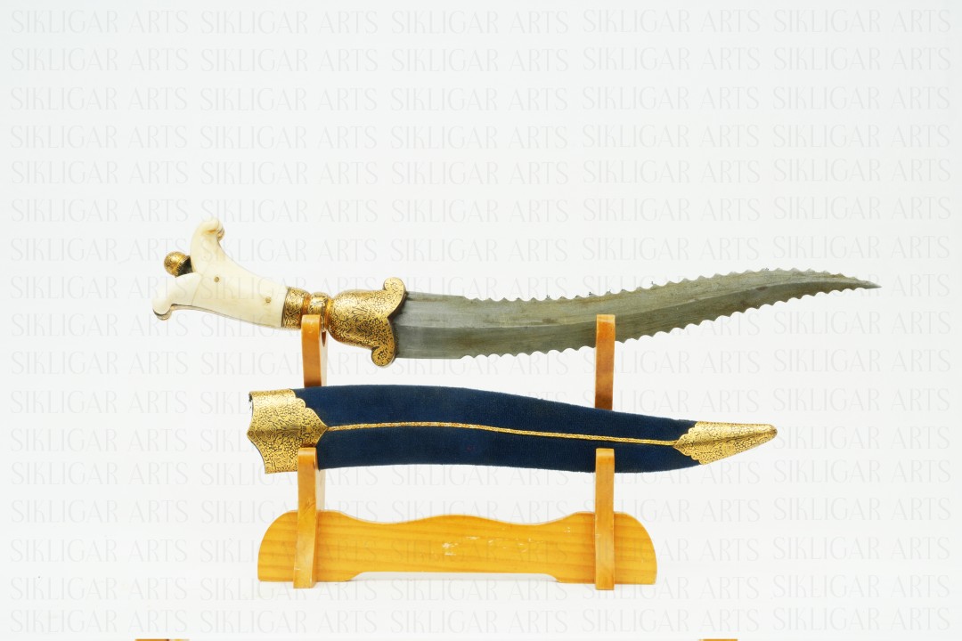 Indian handcrafted dagger with gold koftgari & wootz blade with serrated edge