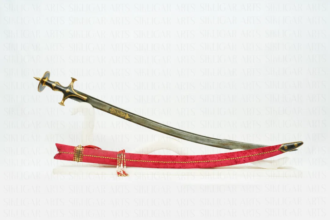 Rajput Maratha Damascus Steel Sword with pure Gold Koftgari Korbandi overlay work