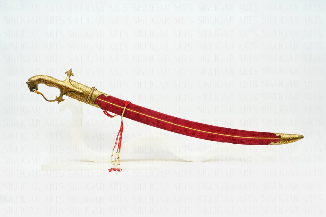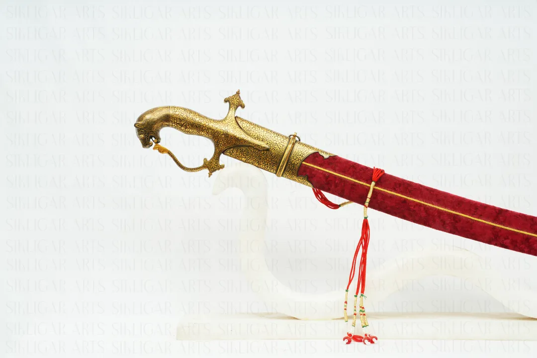 The hilt is made into a lion head decorated with gold handcrafted foliage designed work.