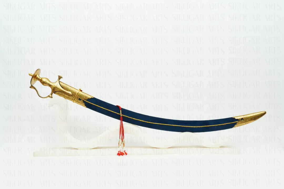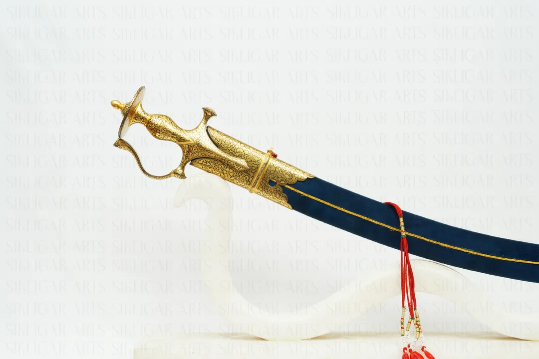 Indian handcrafted Gold Damascened Rajput Maratha Sword with Wootz Blade & Blue Velvet Scabard
