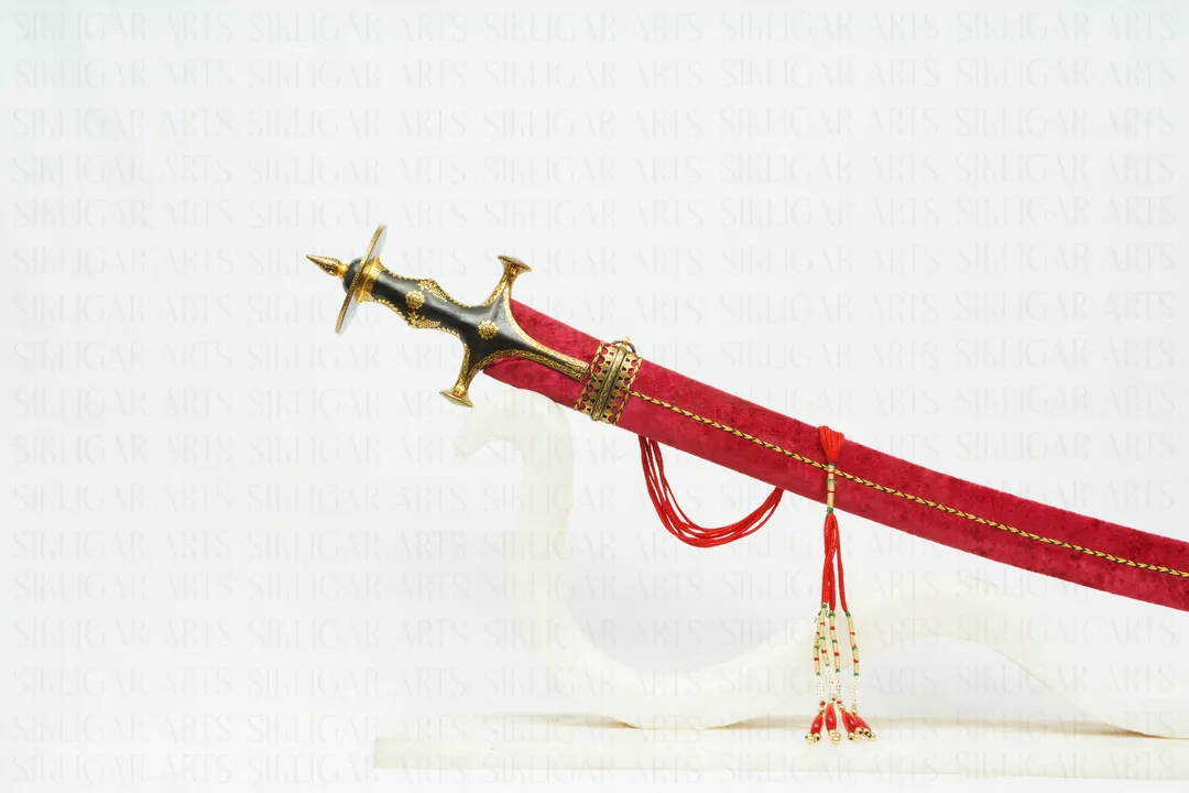 "This Rajput Maratha sword is a stunning blend of artistry and heritage. The Damascus blade features the sacred ""SHRI ALAL SAHAY"" stamp, symbolizing divine support and protection. The blade itself...Read More