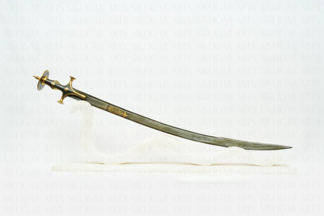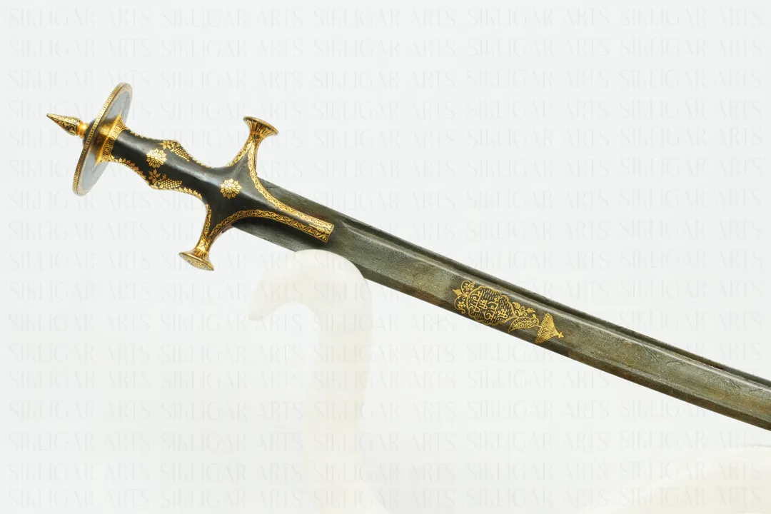 Rajput Maratha Damascus Steel Sword with pure Gold Koftgari Korbandi overlay work