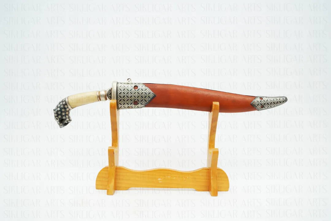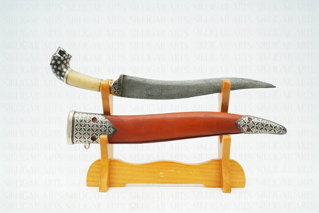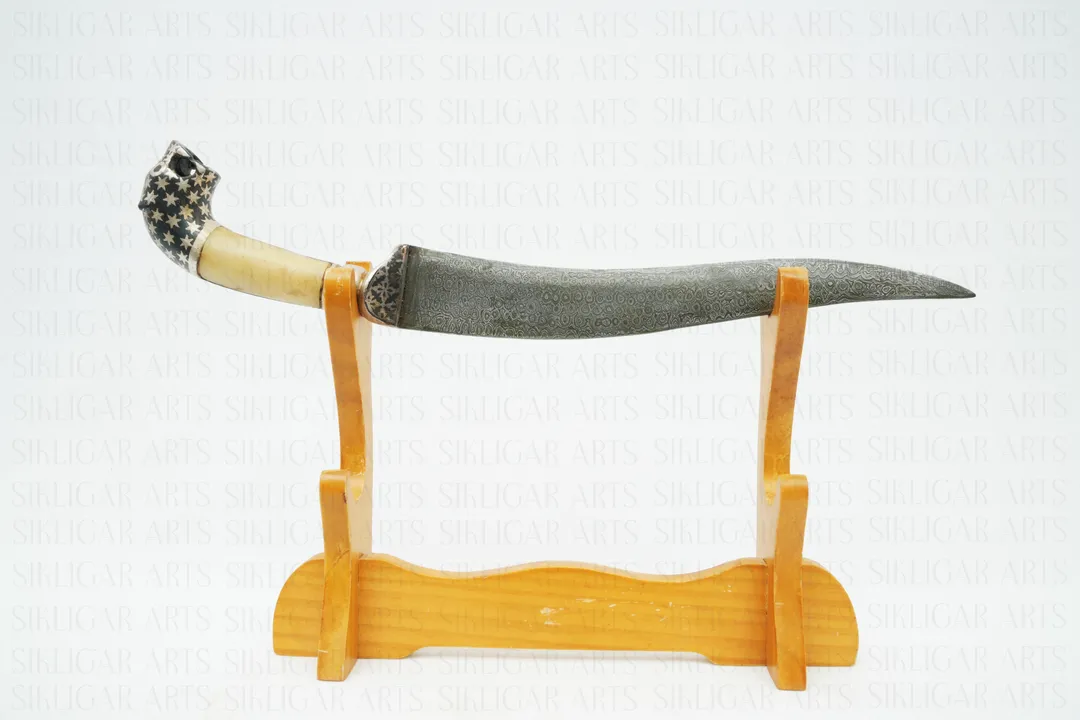 Handcrafted Indo Persian Peshkabz Dagger: Silver Damascened Tiger Grip Knife
