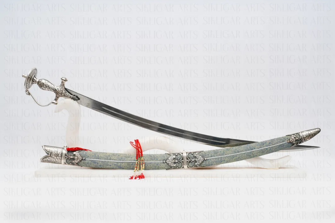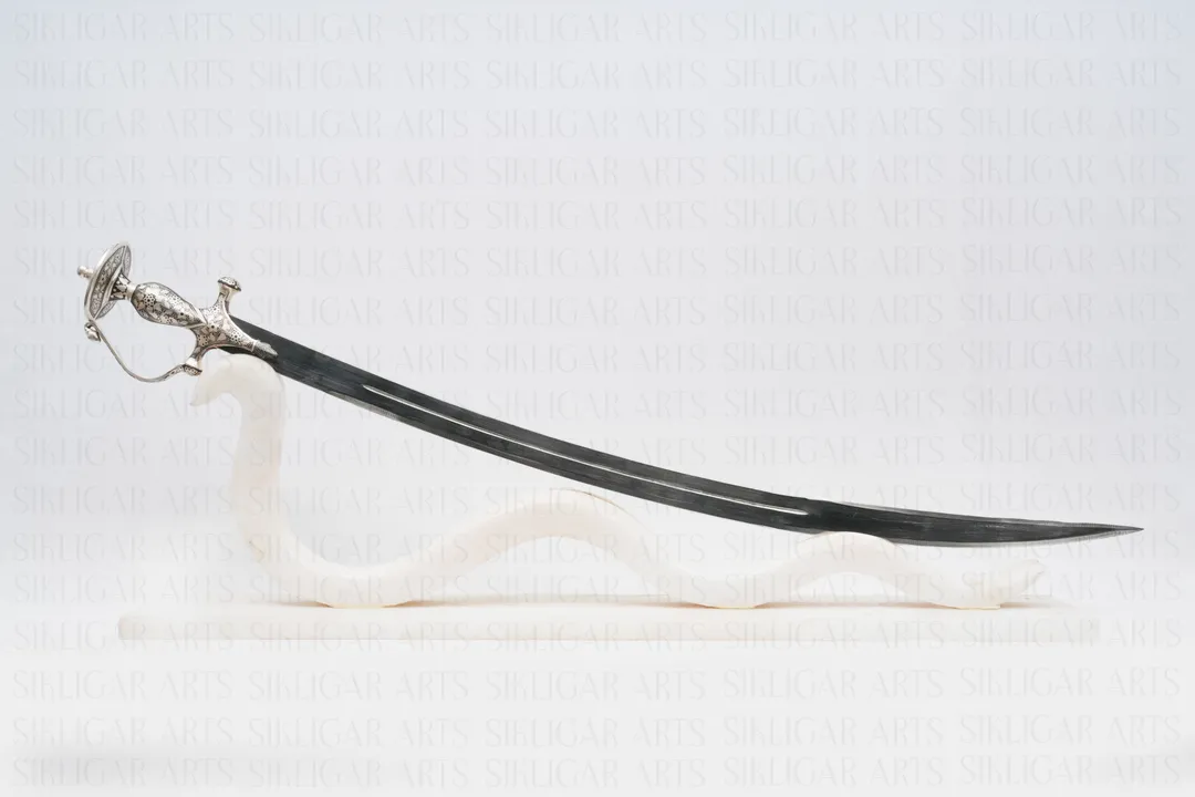 ndian handmade handcrafted Sikh Rajput royal sword talwar Royal katori/disc hilt with silver koftgari work and knuckle guard The hilt is a traditional disc pommel with hand guard with handmade silver calligraphy...Read More